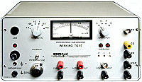 TG 97 Economical potentiostat / galvanostat, current ranges 10 µA to 1 A in 6 decades, current recording threshold < 10 nA, max. output voltage ± 24 V, max. output current ± 1 A, output power 20 W, reference electrode input > 1011 Ohms, slew rate 5 V / µs, internal control source ± 2 V, one control input, ground-referred current recorder output 2 V (full range), analogue meter. Housing 245 x 120 x 240 mm (w x h x d), weight 3.5 kg. T